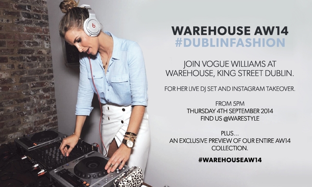 Tonight, Thursday September 4, from 5-8pm, Warehouse on South King Street are inviting customers to join them for an evening of fun with an exclusive set by Vogue Williams.