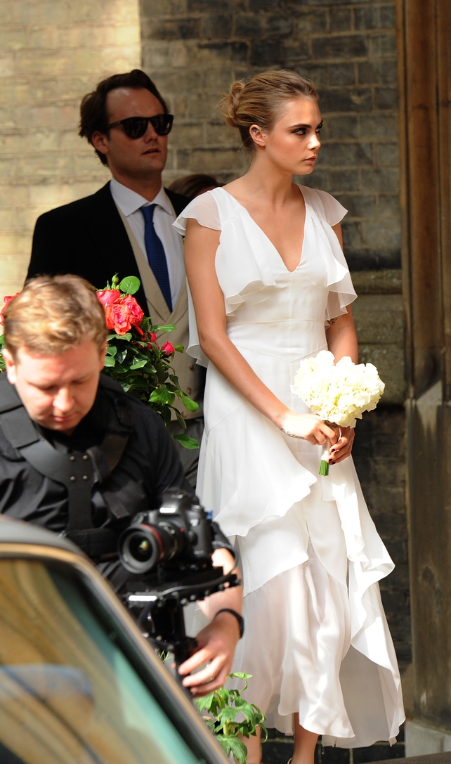 Model Cara Delevingne was, of course, her big sister's Poppy's bridesmaid in 2014. She looked beautiful in a white Chanel dress, casual updo and smokey eye.