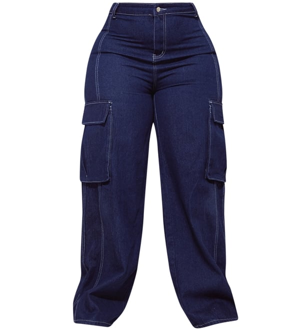 Pretty Little Thing Plus Mid Wash High Waisted Wide Leg Jeans, €42