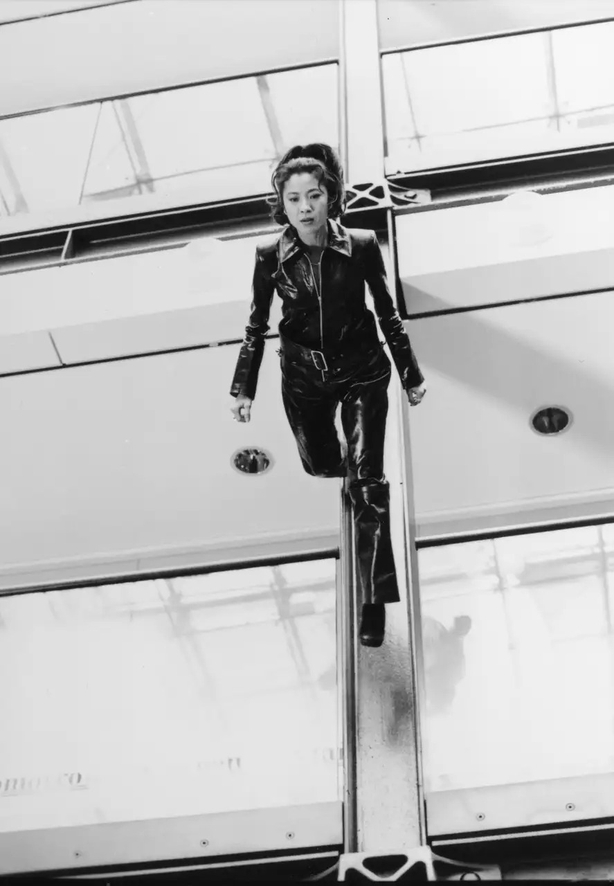 Michelle Yeoh plays Wai Lin in Tomorrow Never Dies, a Chinese agent who supports Pierce Brosnan’s Bond. As well as showing off her seriously impressive martial arts skills, Yeoh’s best fashion moments were all about black leather outfits.