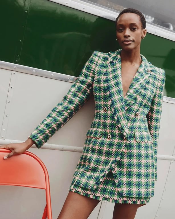 River Island Green Checked Boucle Double Breasted Blazer, €107