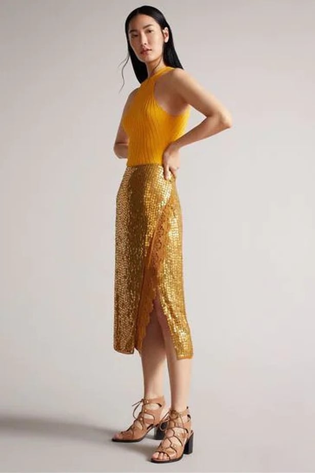 Ted Baker Brown Signora Bronze Sequin Column Slip Skirt, €320 in Next
