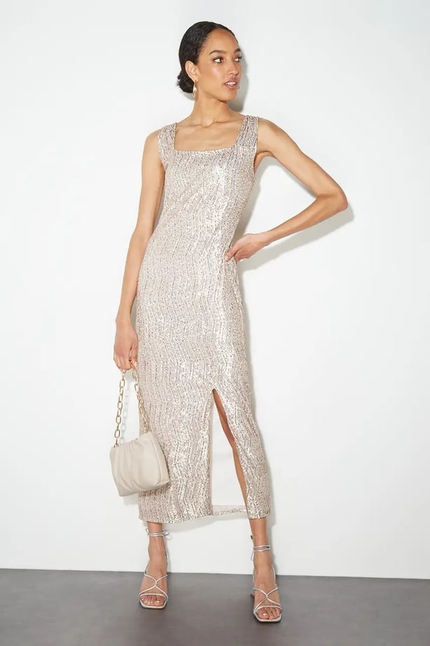 Dorothy Perkins Tall Square Neck Split Sequin Midi Dress, £36 (was £60), Debenhams