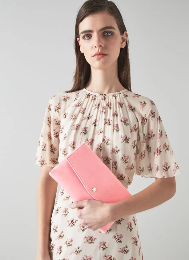 L K Bennett Layla Pink Coral Suede Envelope Clutch, Brown Thomas, €150