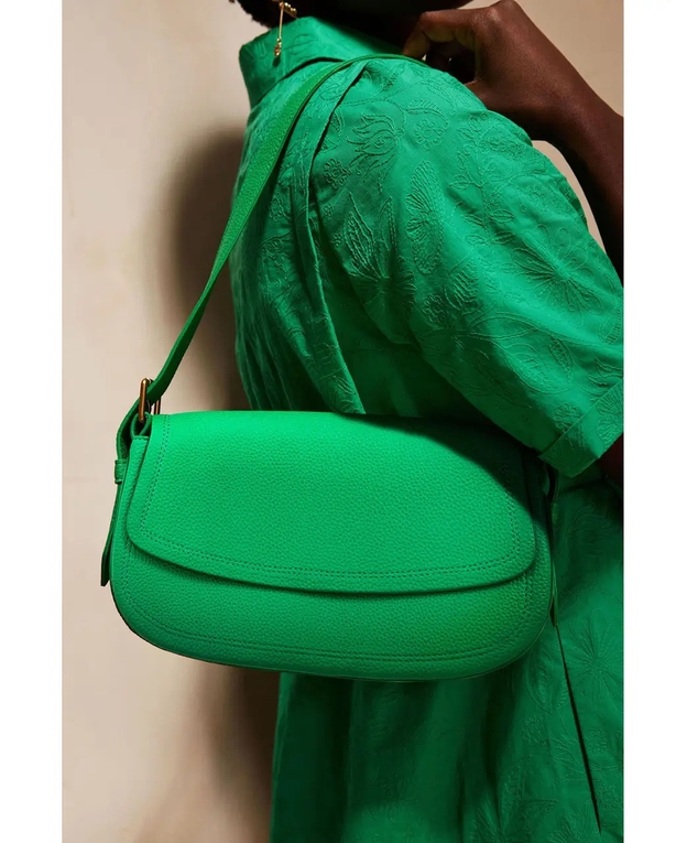 Oliver Bonas Meegan Green Double Buckle Shoulder Tote Bag