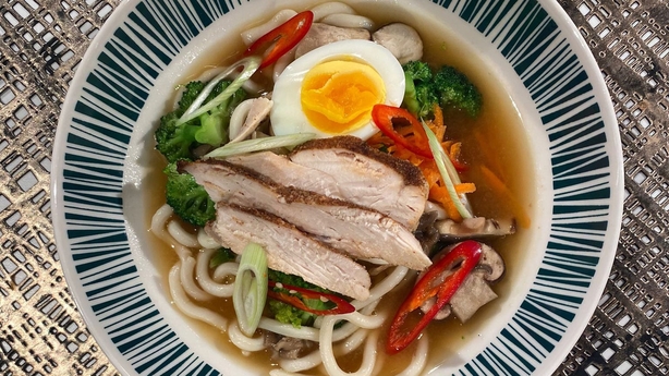 Kev Aherne's chicken ramen with miso, ginger & veg