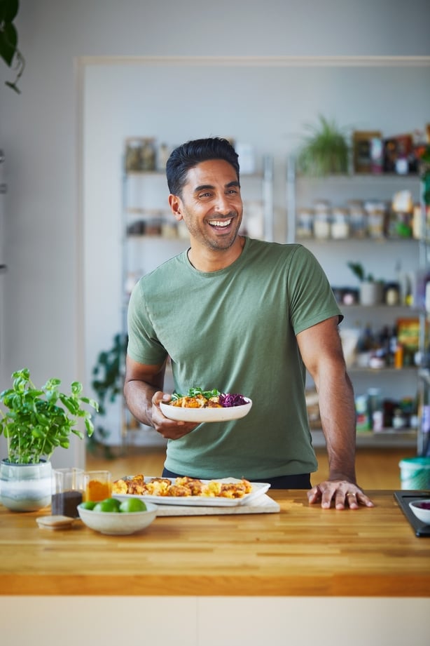 His new book includes the likes of za’atar and tahini beans with crispy tofu, spicy thyme lentil coconut curry, and frozen yogurt, peanut and berry ‘bark’, alongside lean meat and fish options including, masala sea bass nuggets and takeaway-style chicken.