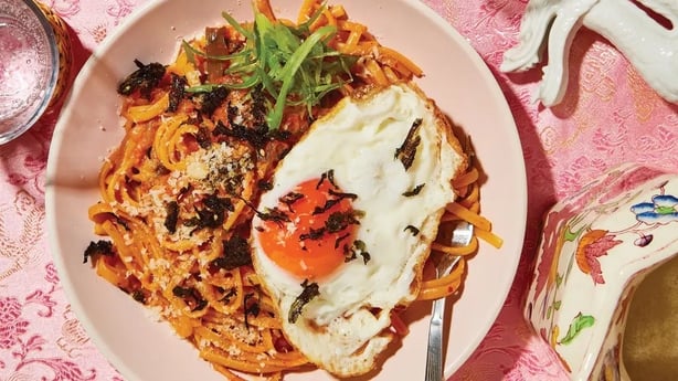 Lara Lee's cheesy kimchi linguine with gochujang butter