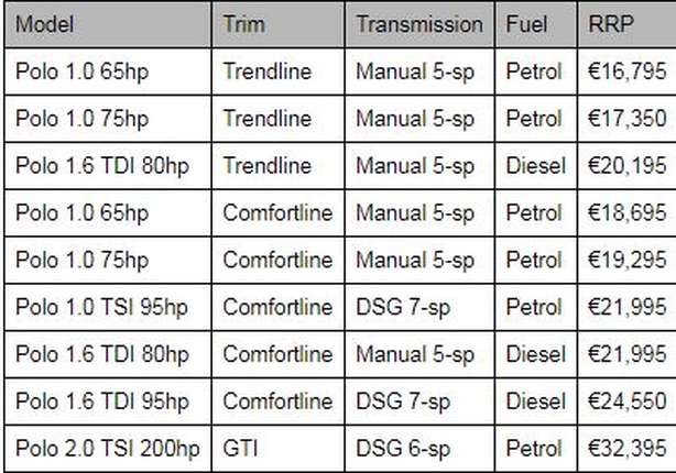 A new and bigger VW Polo arrives here next month, with prices starting at €16,975 for the entry-level 1.0 litre petrol version and the main emphasis is on petrol engines too.