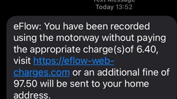 The text said the charge would be a penalty for not paying a motorway toll. It claimed to be from eFlow and warned me the charge would be imposed if I didn't click the link.
