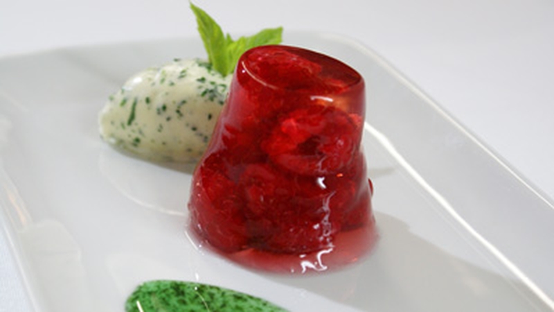 - Place the raspberries in the jelly moulds and pour over the gelatine mixture.