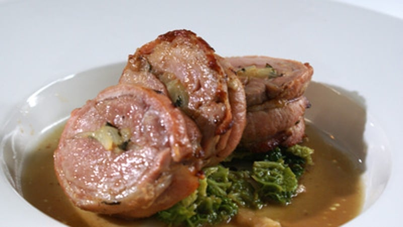 Make the delicious, traditional meal of a roast pork with cabbage.