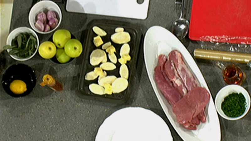 - Place parsnips on plate, cover with pork escalope and spoon some sauce over.