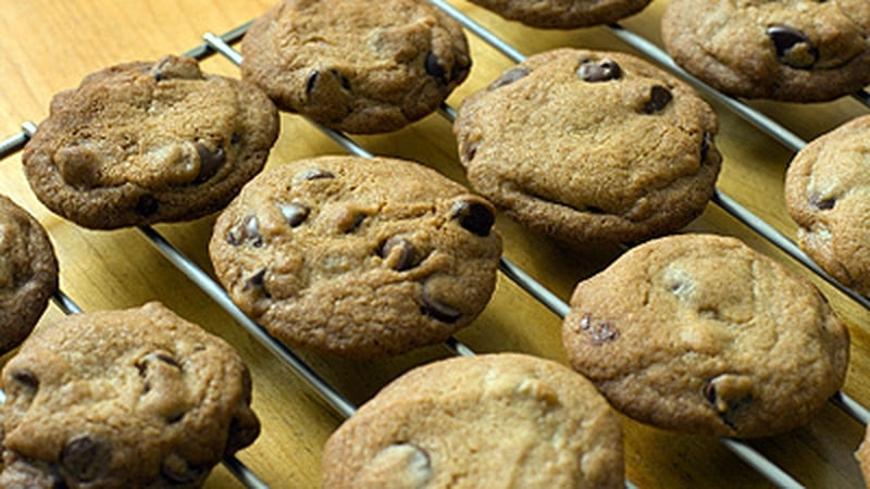 - Using an ice cream scoop, or using large tablespoons, drop balls of cookie dough onto ungreased baking trays.