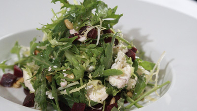 This unusual salad balances the goat's cheese and beetroot flavours to perfection.