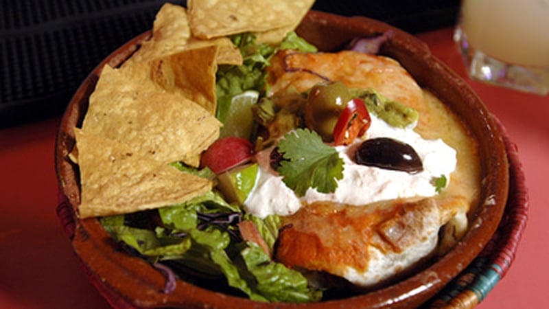 Enchiladas are stuffed flour tortillas (either wheat or corn) covered with enchilada sauce and cheese and baked.
