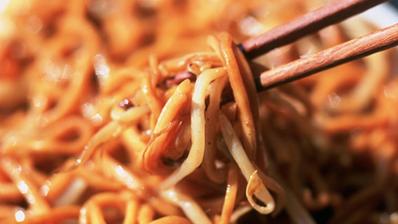 - Once the sauce begins to thicken add the pak choi leaves and cook for a further minute before adding the noodles and mixing well. Once the noodles are hot serve up in hot bowls.