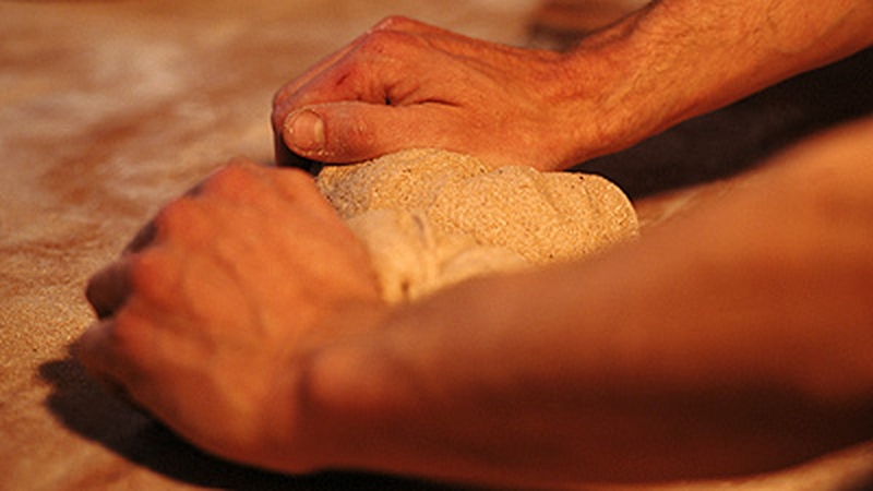 - Tip out the dough and knead to form into a ball shape. Knead it briskly for 1 minute, it should be quite stiff and hard to knead. Wrap in cling film and leave to rest in a cool place for 1 hour before using.