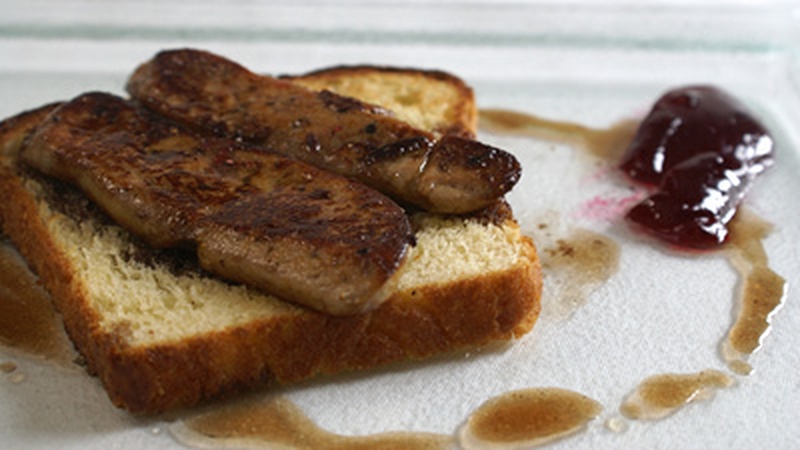 - Place the seared foie gras alongside and drizzle with some of the pan juices and the balsamic reduction sauce.