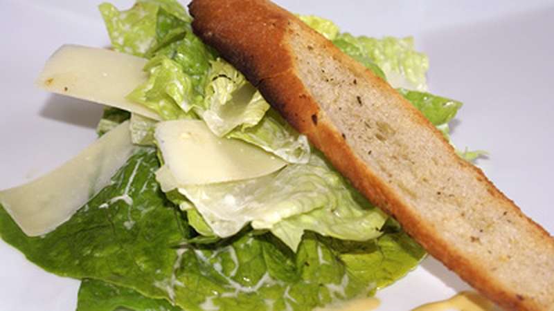 - Rub some of the garlic clove on the bread and spread with butter, toast under the grill and garnish the salad with this crouton and serve immediately.