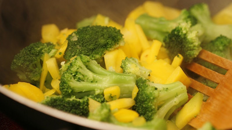 - Then add a little water, turn up the heat and allow to boil to finish cooking the broccoli.