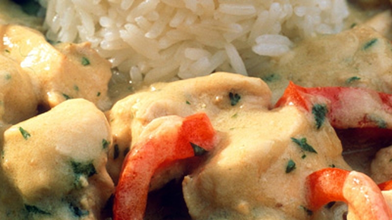 - Add the curry powder, chicken and cook for a couple of minutes until the chicken is well coated.