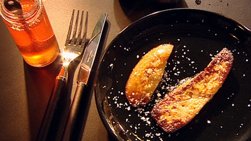 - Remove it and wipe the pan clean with kitchen paper before bringing it back to the heat. Cover as much of your stainable self as possible with something non-stainable, and quickly lay the slices of the foie gras in the pan. Let them sizzle for about 1 minute, having a peek underneath after about 45 seconds. A thin, dark, caramelised crust should have formed.