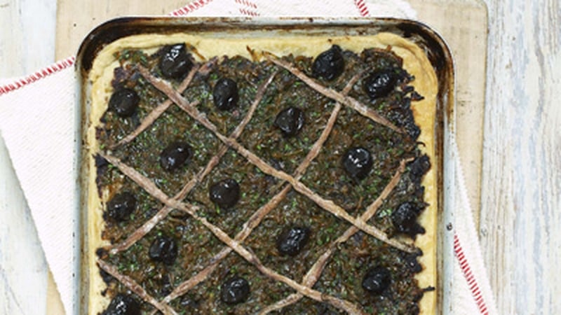 Rachel Allen's French dish is like an oniony pizza. The base can also be made with puff pastry, which does not need pre-baking. French Niçoise olives are best on top, but Greek and Italian will do just as well. Pissaladière is perfect for a summer lunch,