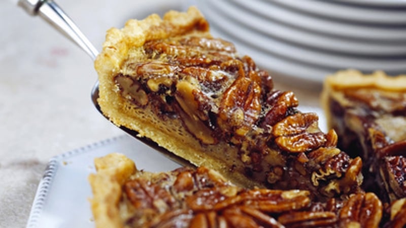 - Place the pecans in the mix to create a nice even pattern. Return to the oven and bake on the centre shelf for 40 minutes.