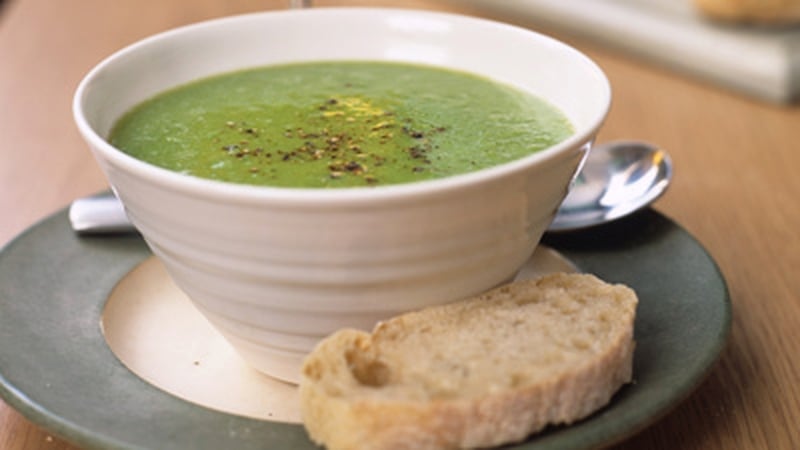 - Blend the mixture until the soup has a smooth texture. Pour the soup back into a saucepan and simmer until hot all the way through, but not boiling.