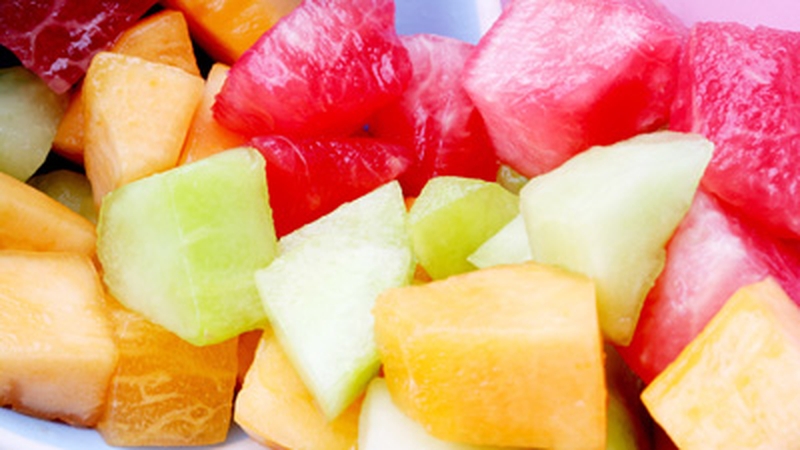 - Chop melon, pineapple and apple into chunks and make your skewer with one fruit after another