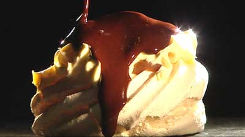 - Simply pour the chocolate sauce over the top of your Mont Blanc.