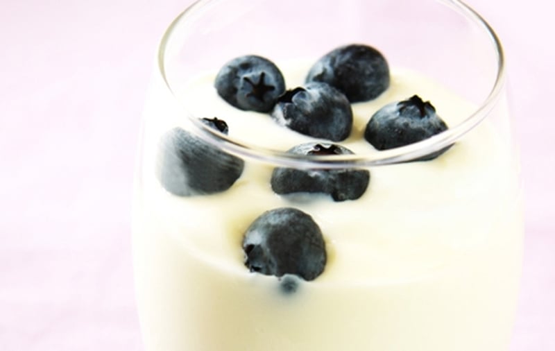 - Place the half bananas on a plate and pour the vanilla yogurt over and serve with raspberries.