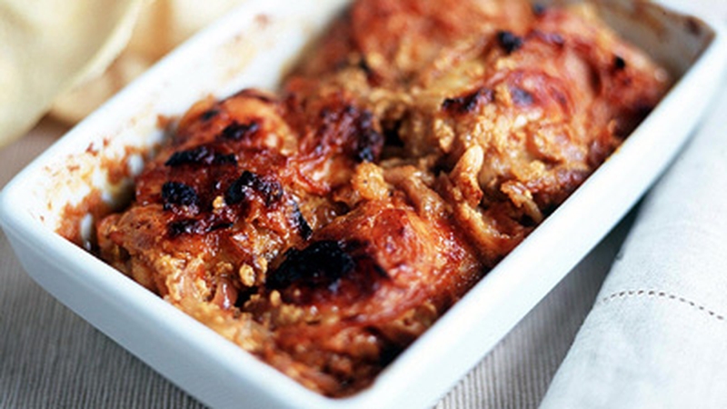- Heat the oven to 220°C. Then debone the chicken thighs, use a sharp knife and follow the line of the bone and cut it from the flesh, being careful to take as much meat away from the bone as possible.