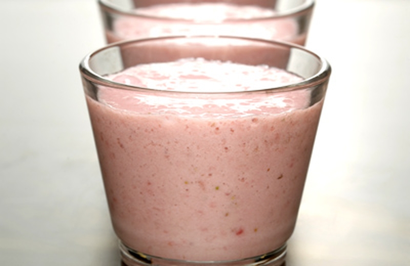 - Add frozen (or fresh) raspberries and the yoghurt.