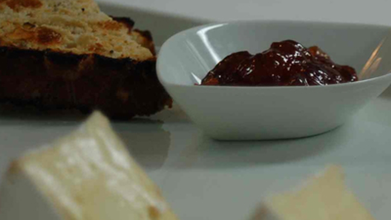 - Toast the bread, cut it diagonally and place on a large serving plate. Put 3 pieces of the Cooleeney cheese on the place and some candied pecans. Put one tablespoon of the plum jam on the plate and serve .