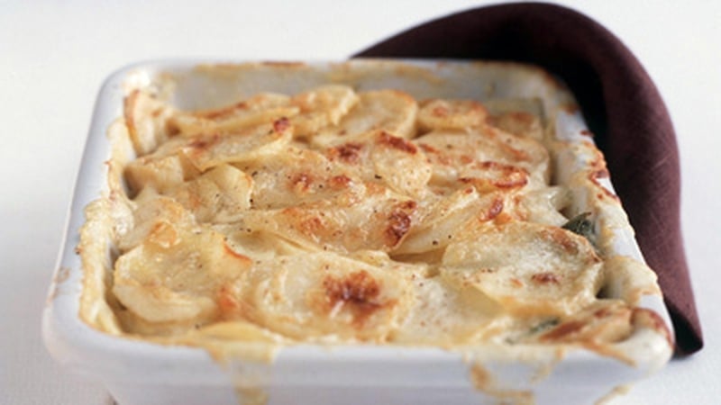 - Sprinkle with the remaining cheese and bake, uncovered, until the potatoes are very tender and the gratin turns golden and a little crisp, approx 15 minutes.