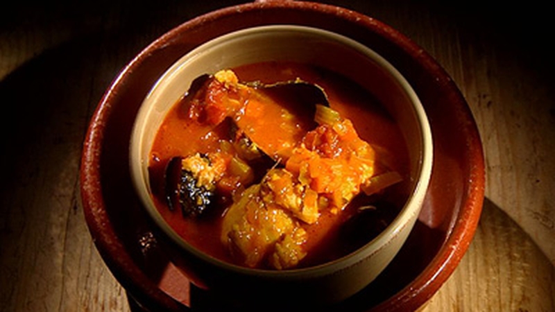 - That’s going to simmer on a low heat for about 40 minutes and then we’ll put the fish in at the end. I’m keeping it simple with just some white fish and mussels.