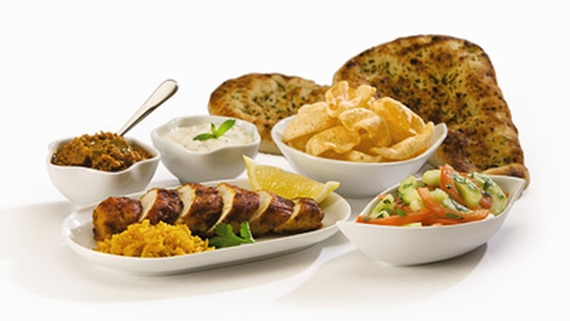 - Serve the poppadoms and Nann bread with the raita and lime pickle, and the salad in separate bowls.