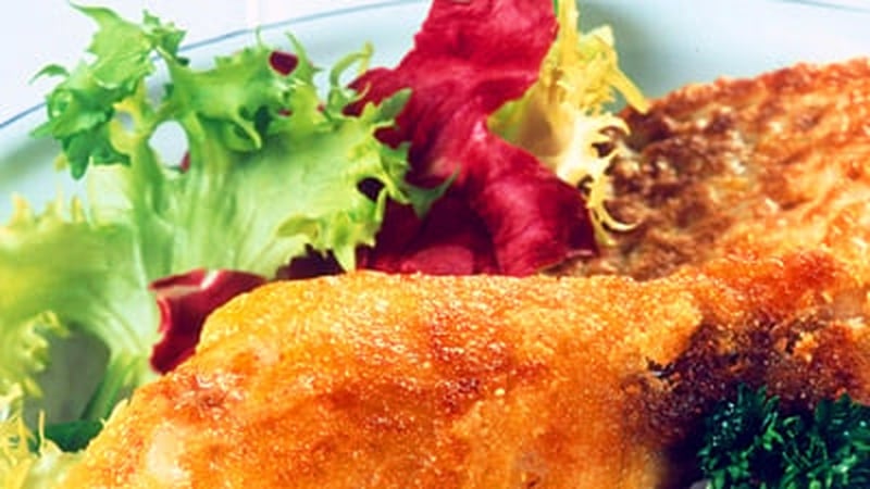 - Dip the chicken into the plain flour, which you have seasoned with salt and pepper.