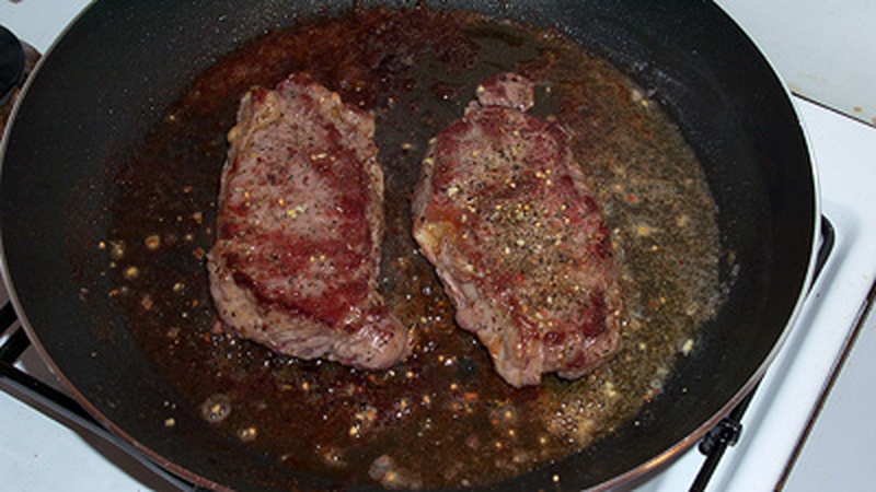 - Remove the meat from the pan and set aside for a moment. Return the pan to the heat but do not wash it.