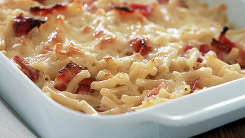 - Place in an oven proof dish, sprinkle with the remaining cheese and place in the pre heated oven for 20 minutes or until the top has turned golden.