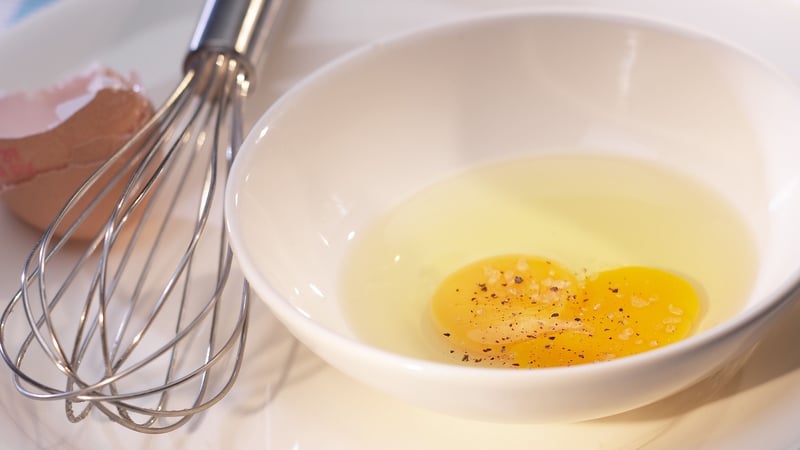 - Whisk eggs and cream together and cook over a bain-marie until just starting to turn lumpy.