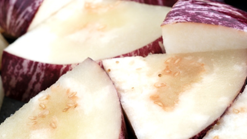 - Lightly coat an auburgine with a little oil and stick a fork into it.
