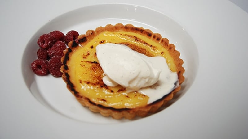 - Place the tartlet on a plate with a spoonful of the poached raspberries and some crème chantilly.