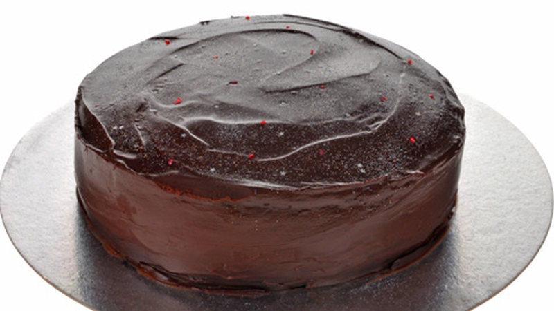 - Put one of the cakes onto a serving plate and pour half of the chocolate filling over it and place the other cake on top. Pour the remaining filling over the top and sides of the cake. Smooth with a palate knife and leave in the fridge for an hour before serving.
