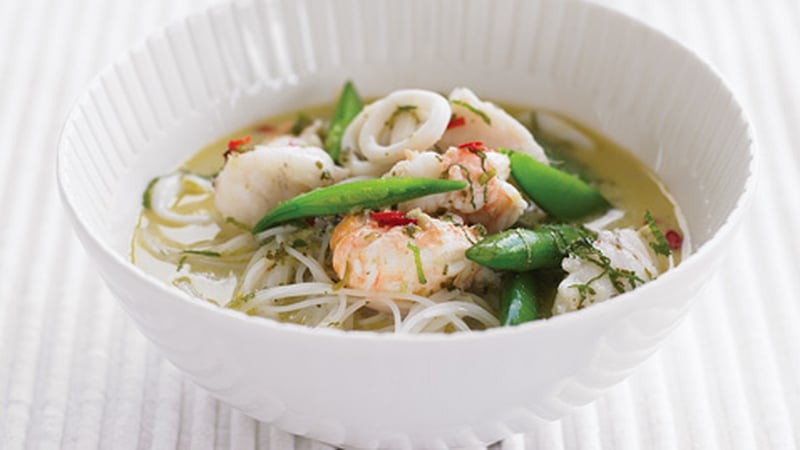 This is a southern Thai dish that I picked up on my travels. The broth has a fragrant, spicy flavour and is great for lunch or as a light dinner.