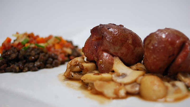 - To serve, put some lentils on each plate and place some kidneys on top.