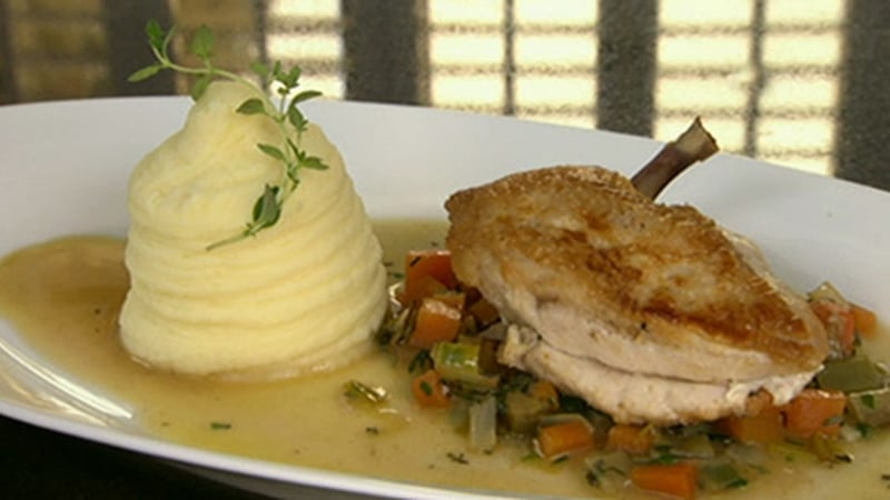 - Place the onions in a roasting tin with the carrots, leek, celery and garlic cloves, tossing to coat in 1 tablespoon of olive oil. Sit the chicken on top of the pile of vegetables and drizzle all over with the remaining olive oil, then season well, rubbing it all over and right into the slashes.