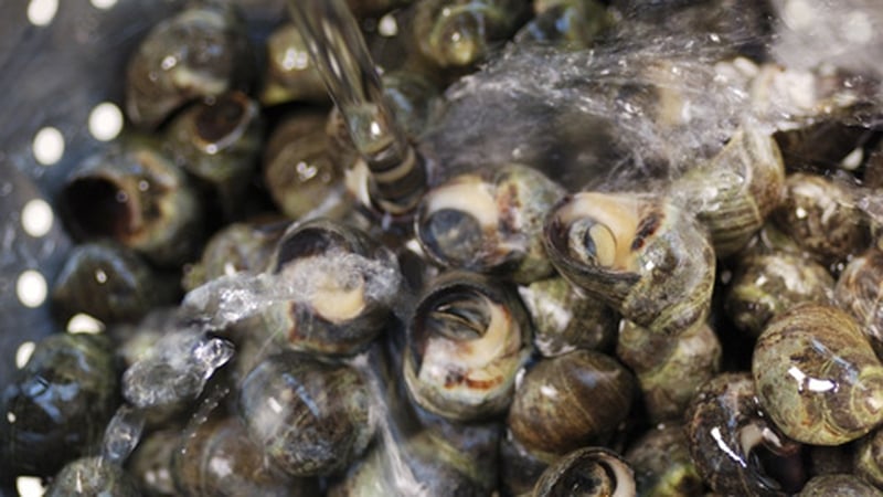 - Toast the Chiabatta in slices and place the a little samphire on each. Now spoon over the winkle butter and finish with a little chopped parsley.